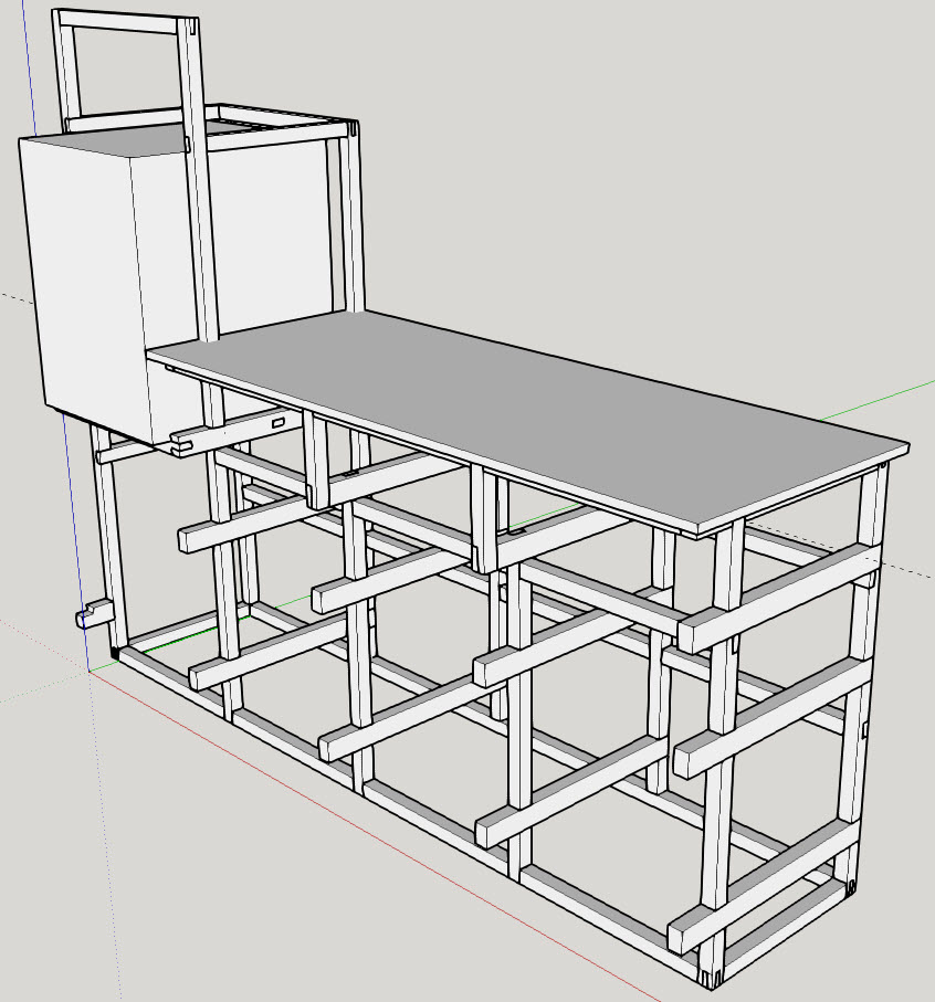 Wie auch schon beim Hochschrank, werde ich die Küche in Gitterbauweise herstellen, das ist einfacher und leichter! Hier mal Bilder aus dem CAD Plan: